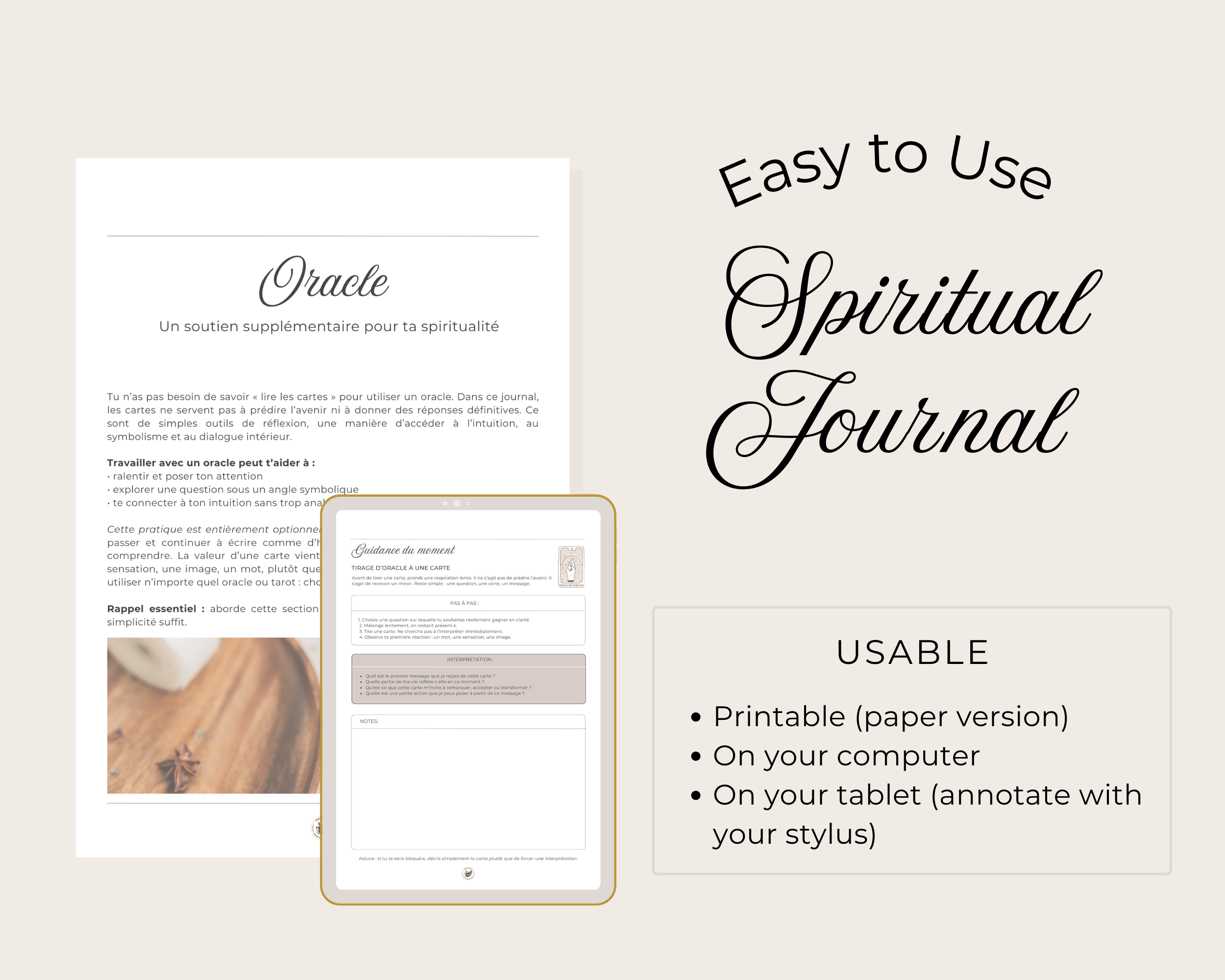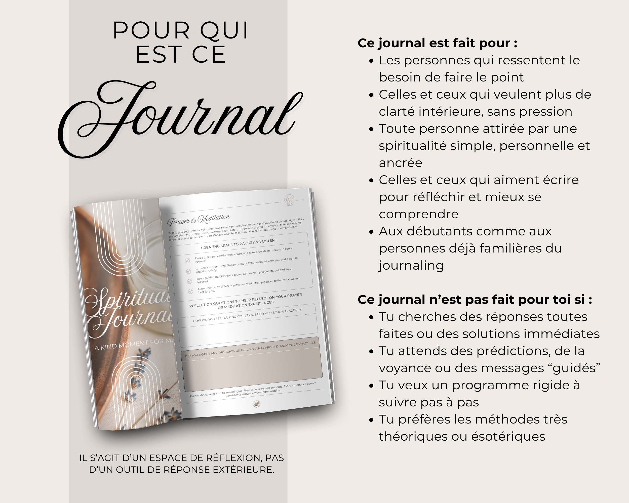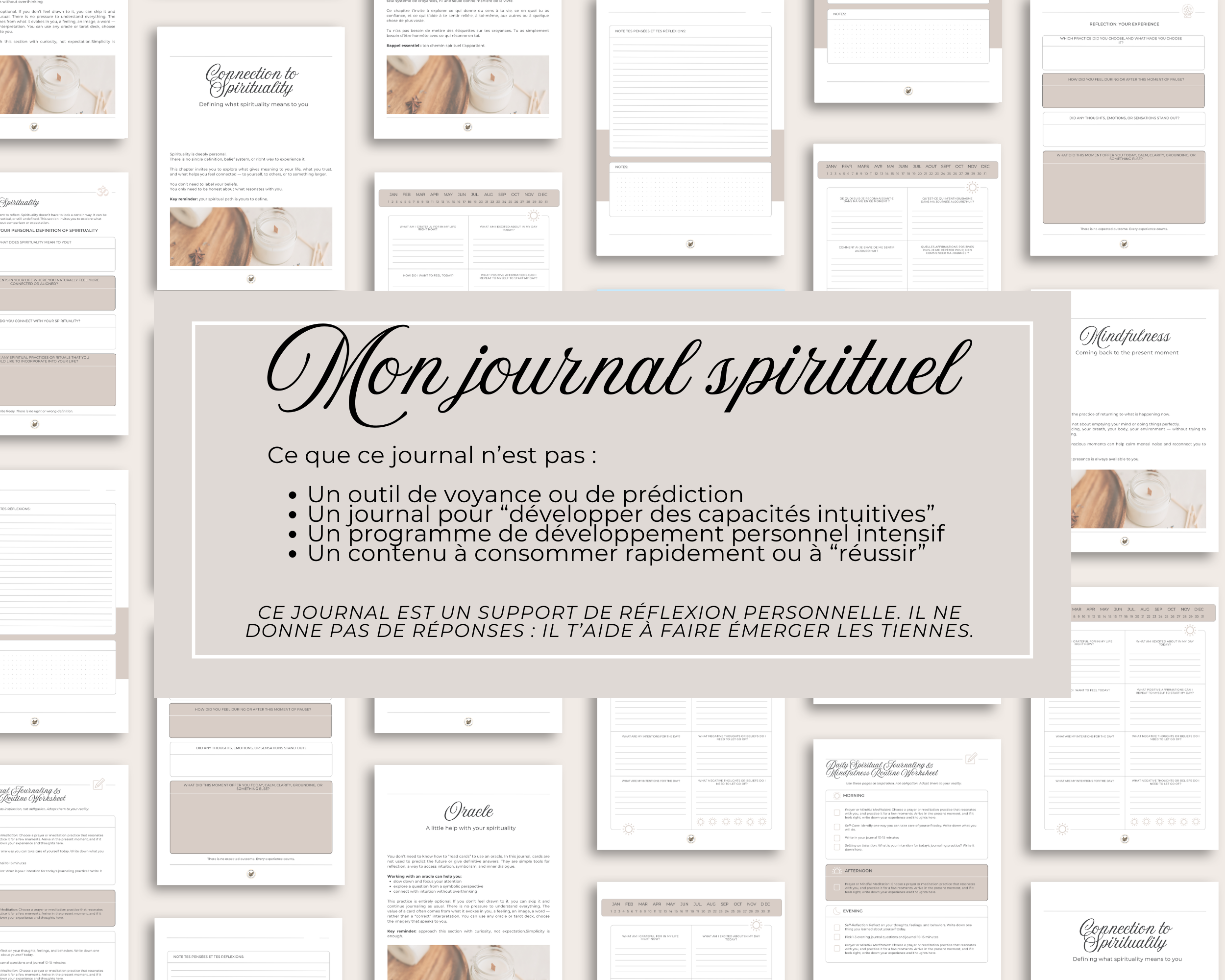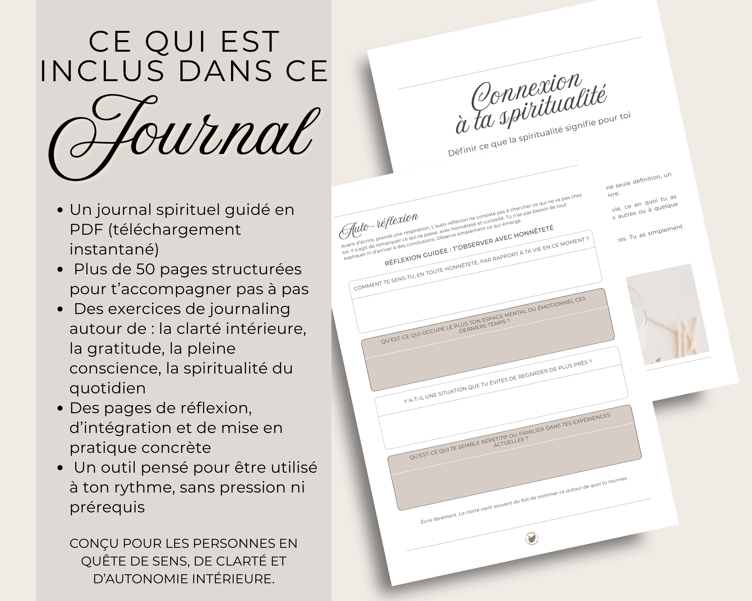 Bienvenue dans ton Journal Spirituel : un espace bienveillant conçu pour t’aider à faire le tri à l’intérieur, gagner en clarté et retrouver confiance dans ta boussole intérieure.